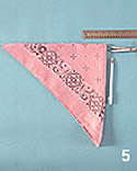 1.From one bandanna, cut four 3-inch-wide strips to make straps, as shown.