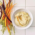 Directions: In a food processor, combine the chickpeas with the liquid, garlic, lemon juice, and tahini and puree to a chunky paste. Scrape down the side of the bowl. Add 2 tablespoons of olive oil and the paprika and puree until smooth. Season the hummus with salt, drizzle with olive oil, and serve with pita chips or crudités.