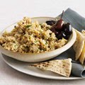 Directions: Preheat the oven to 450 degrees F. In a large bowl, toss the cauliflower with the oil, ginger, and coriander and season with salt. Spread the cauliflower on a rimmed baking sheet and roast for about 40 minutes, stirring once or twice, until tender and lightly browned in spots. Let cool slightly. Transfer the cauliflower to a food processor. Add the tahini and lemon juice and pulse to a chunky puree; season with salt. Add the cilantro and pulse just until incorporated. Transfer the spread to a bowl and sprinkle with sesame seeds. Serve warm with pita bread or chips.