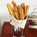 Into pastry bag or cookie press, fit 1/2 inch star tip. Transfer dough to bag or press. Onto ungreased large cookie sheets, pipe dough into 5-inch-long straws, spacing straws 1/2 inch apart. Bake, 1 sheet at a time, 18 to 20 minutes or until pale golden brown. (Refrigerate remaining straws on cookie sheets until ready to bake.) Cool straws on cookie sheet on wire rack 5 minutes, then transfer with spatula to wire rack to cool completely. Store in tightly sealed container up to 3 days.