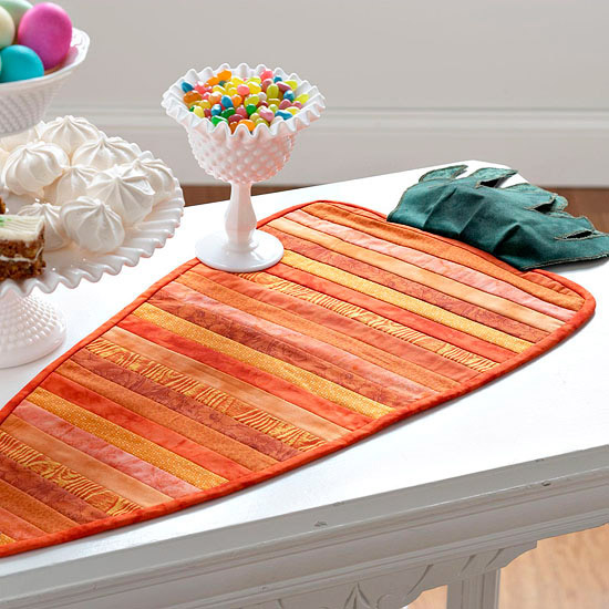 A multitude of orange-print strips combines to make this seasonal table runner. You’ll finish it quickly, because it’s pieced and quilted at the same time by quilting as you go.