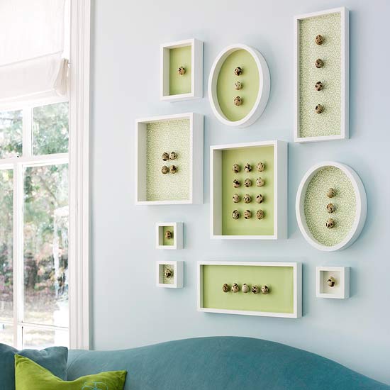 For festive and fun Easter decor, display blown-out quail eggs (available online) in an arrangement of shadow boxes or display frames. Start with springy pastel construction paper, and adhere a few eggs for an adorable holiday decoration you won’t want to take down.