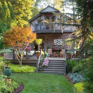 Put in small ornamental trees if you’re preparing the house for sale soon. If you’re staying put, think long-term and try oaks, maples, honey locust, or other large and strong species suitable for your region. Consider fast-growing species or small ornamental trees, such as pagoda dogwood, redbud, flowering pear, river birch, or Japanese maple; these can add dramatic interest without requiring years to get established.