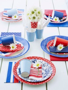 Mix and match assorted paper goods to create a patriotic table setting. Don’t worry if the blues and reds don’t match perfectly — together they’ll create a cohesive look suitable for any patriotic holiday.