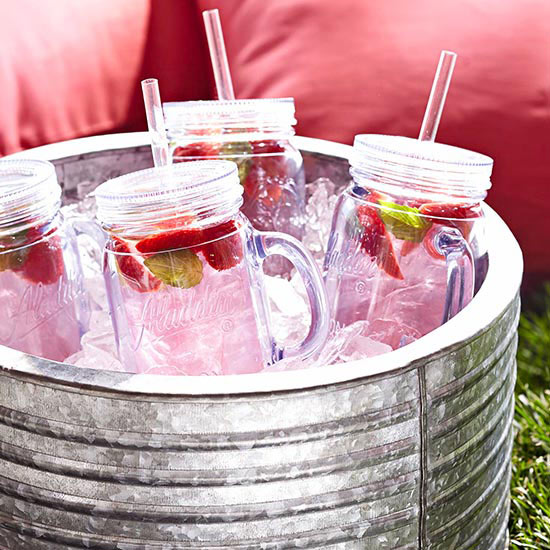 There’s something classic about Mason jars, and they’re great vessels for 4th of July drinks. Shop antique stores for vintage versions, or look for Mason jars with handles, lids, and straws online, which makes them perfect for portable picnicking.