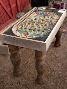 Pinball Wizard ~ An old pachinko game was repurposed into a conversation-piece table. To make the transformation, ornate legs were simply fastened to the bottom of the game.
