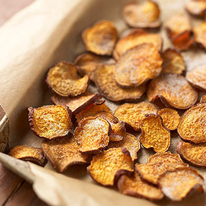 Sweet spuds are some of the most nutritious vegetables around: They’re packed with vitamin A and are good sources of B6, C, and folate. These simple, delicious chips are great alternatives to the greasy, store-bought variety.