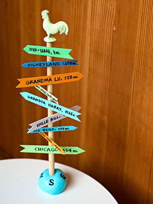 Show the way to loved ones and favorite vacation spots with our tabletop signpost.