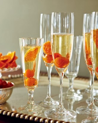 Candied kumquats are a colorful addition to these celebratory sparkling drinks.