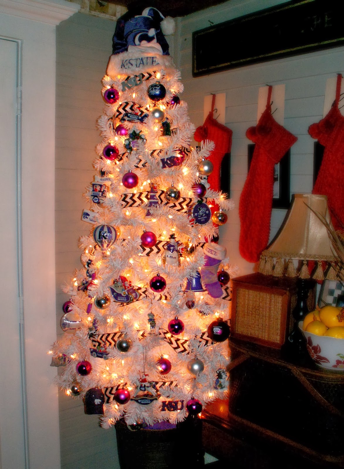 This is the only non-traditional colored tree we have and we opted for white so that the purple and silver stands out! We also put it in the back porch/mud room since everyone uses that door and hence will see our K-State Pride ~ GO CATS!!!
