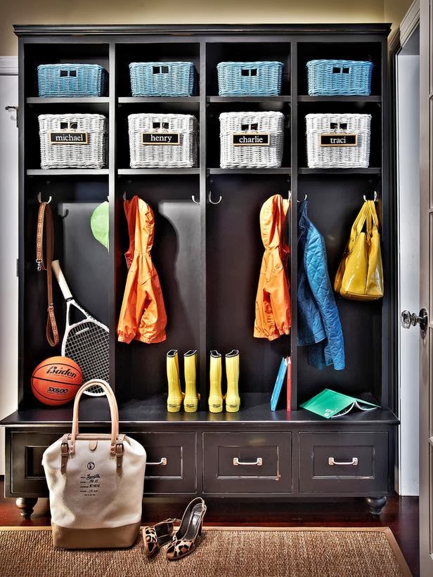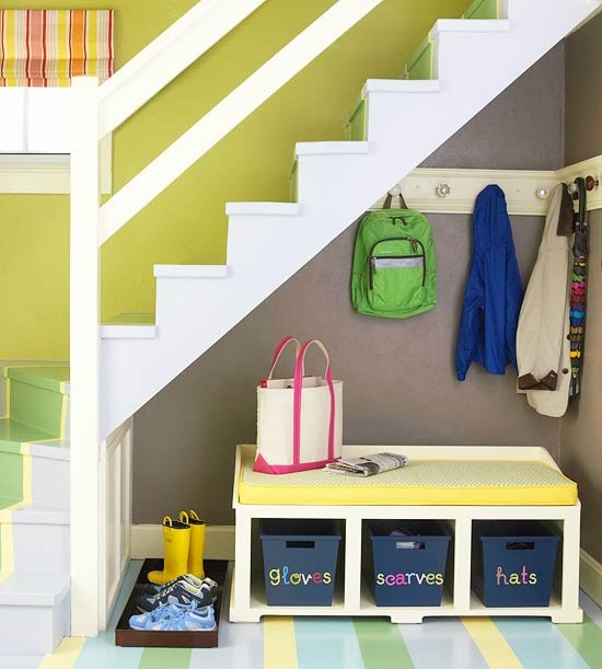 A Place for Everything ~ Whether it’s a dedicated room or a stretch of wall inside the door, the key is to have a place for all the things you bring in that don’t need to go any farther into the house. Make a list of those items — coats, boots, mail, and keys — and create an easy-access storage spot for each one right by the door.