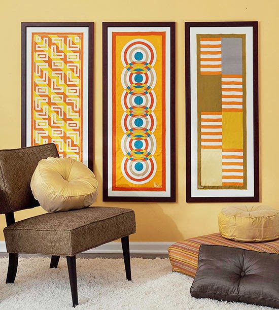 Scarf Art ~ Reimagine textiles as wall art by placing scarves inside picture frames. Display coordinating patterns together for an entire gallery of artistic neckware.