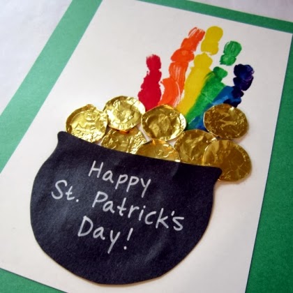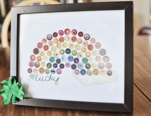 Lucky Button ~ Gather a couple handfuls of various buttons in a rainbow of colors and glue them on cardstock. Frame and attach a clover in the corner using craft glue.