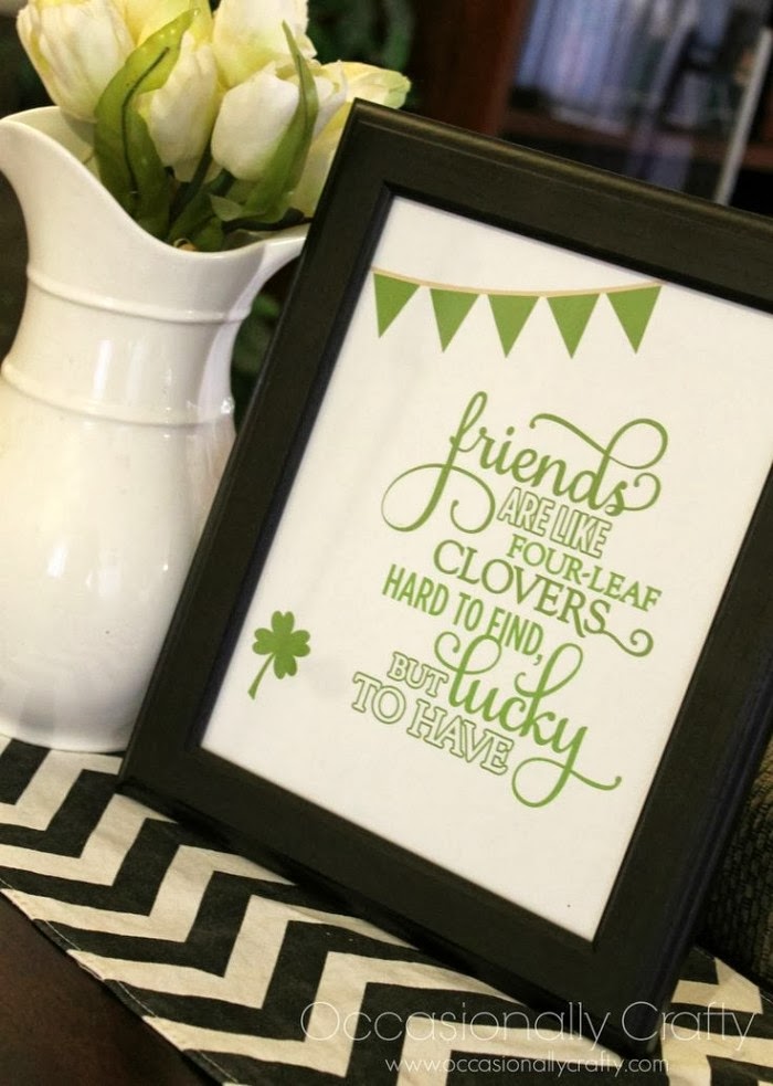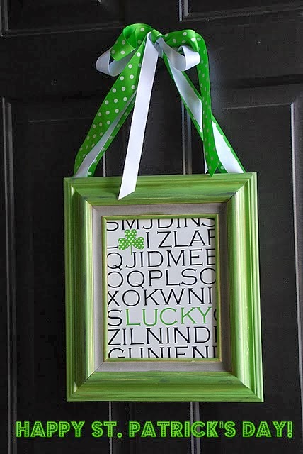 Simple St. Patrick’s Day Sentient ~ Print out an alphabet font doing just the “lucky” letters in green along with a little shamrock. Place in a frame and finish with green ribbon.