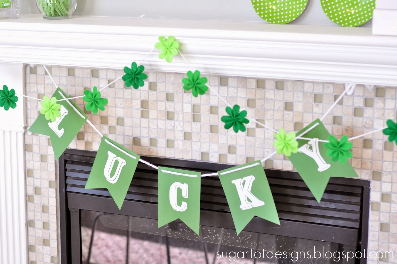 Simple St. Patrick’s Day Lucky Banner ~ Use the printable, cut out each banner, punch a hole in the top corners, thread string through, and hang!