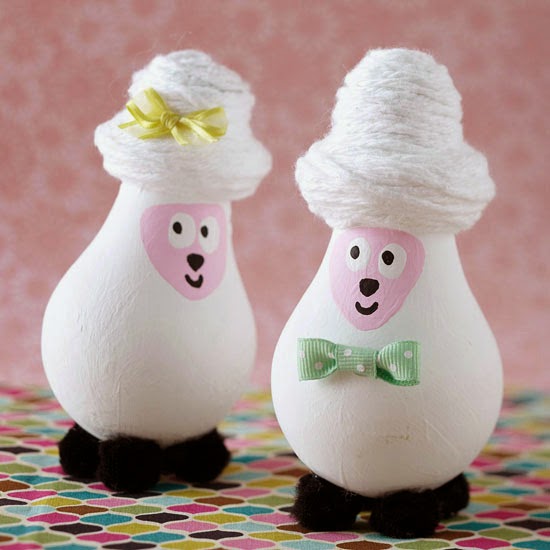 These little lambs are adorable! Let your older kids create this cute Easter craft and recycle burnt-out lightbulbs (and you don’t need many supplies to get them looking their best!). Paint a standard lightbulb white and let dry. Add a face with pink paint, then add more facial features with black and white paint. Wrap the metal screw top with white yarn to give the sheep a hat, then glue on black pom-poms for the feet and finish with a bow. Let kids decorate their lambs with other crafty embellishments, such as glitter or paint if desired.