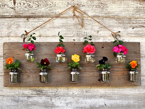 Who knew that those little jars that once contained stewed carrots and pureed peaches could make such a dramatic presentation? Laura, the blogger behind Make Life Lovely, that’s who. She affixed nine jars to a castoff board with plumbing clamps to hold snipped buds, but it’d be just as easy to plant them with succulents for a longer lasting display. Get the tutorial at Make Life Lovely