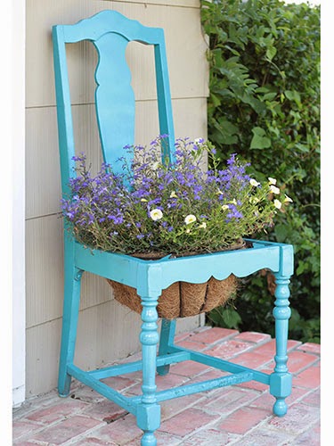 An unwanted dining chair can live in the lap of luxury once more with this treatment from Sew Caroline. Add a coir-lined basket in place of the seat, top with a couple coats of brightly colored paint, and you’ve got a porch-worthy perch of a planter. Get the tutorial at Sew Caroline