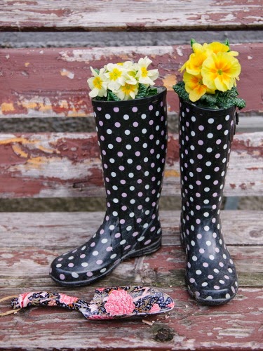 These well-worn boots had holes in their soles — not great for rain, put perfect for planting! The owner poked some more to create extra drainage before adding soil and primroses. Get the tutorial at Kittenhood