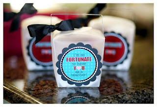What you’ll need: a chinese take out box (we picked ours up at michael’s craft store), fortune cookies (you can find them at smart n final or albertsons), the label (Download Teacher Fortunate Tags) or (Download Blank Fortunate Tags), a 4″ scalloped circle, a sheet of tissue paper, ribbon, optional: milk chocolate melts and sprinkles/jimmies. All you need to do is: print your label and cut it out (we used a 3″ circle punch), adhere the label to the scalloped circle and attach to the front of the box, add the sheet of tissue paper to the bottom of the box, fill it up with fortune cookies and tie a bow on the handle. It’s as simple as that…