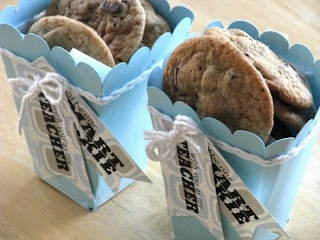 Print out two copies of the sentiment on some fun card stock. Attach to any container that will hold around 8 small chocolate chip cookies. You can individually wrap the cookies to keep them safe and clean if you use an open container as the one shown!
