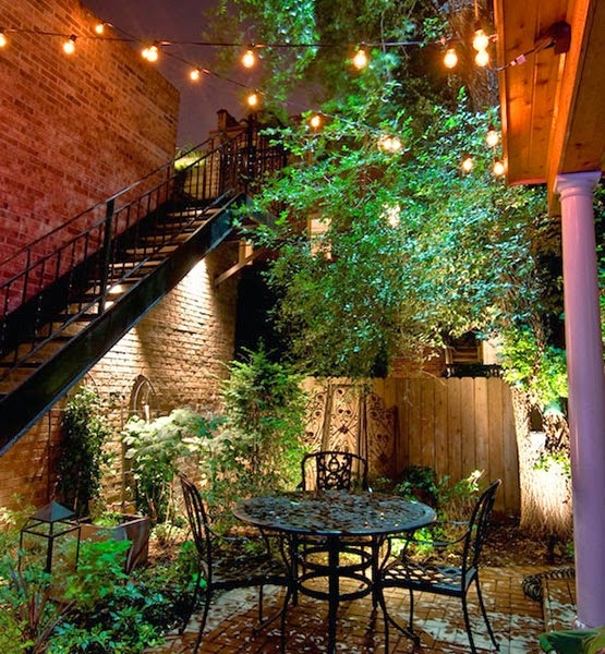 An outdoor space feels bigger and more welcoming when it’s well lit. Try adding landscape lighting to the plantings in the corners of your patio to draw the eye all the way to the edges of the space.