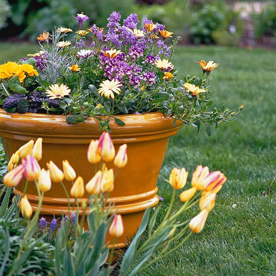 Hint: Echo the color of your house in your container garden, or use it to complement blooms from your yard for extra appeal.