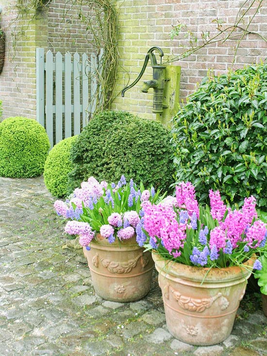 In your local garden centers, look for prechilled bulbs already potted and growing. Here, hyacinth bulbs fill the air with sweet perfume.
