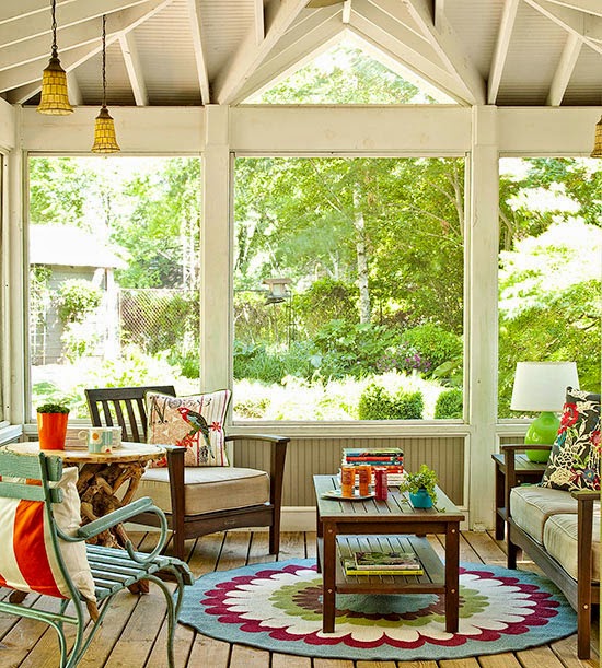 Screen a porch so pesky bugs stay out, and the cool summer breeze can still come in. A screened porch makes a great place to have dinner when the weather allows. The screens still let the sunshine pour in and don’t distract from great views. Add indoor touches, like a pendant, to an outdoor space to make it feel more homey and decorated.