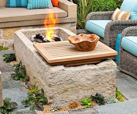 By moving the other half of the top of the three-in-one table, the fire pit is revealed. Perfect for cold nights, the fire pit is a great place to gather around and share stories with friends and family. There are wood tops for both sides of the table so both the fire pit and the drink cooler can be covered.
