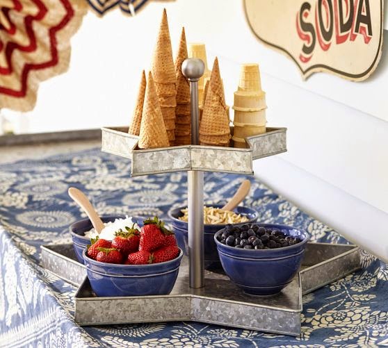 Galvanized Metal Star Tiered Stand ~ The countryside style of galvanized metal brings to mind summer picnics and 4th of July fireworks. Featuring star-shaped trays for patriotic appeal, this playful stand is perfect for passing out holiday treats.
