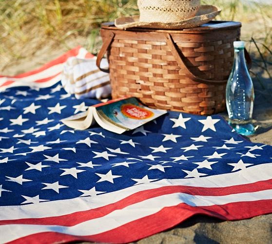 American Flag Picnic Throw ~ Embrace your patriotic side. A soft blend of cotton and linen makes our American Flag throw a comfy favorite for warm summer picnics.