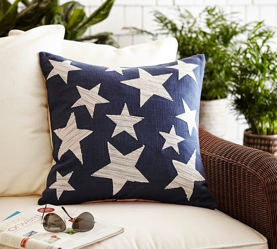 Stars Embroidered Pillow Covers ~ Embroidered with an array of stars on a rich navy backdrop, this pillow cover adds a touch of vintage Americana to your room.