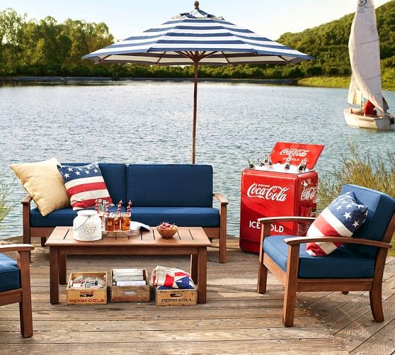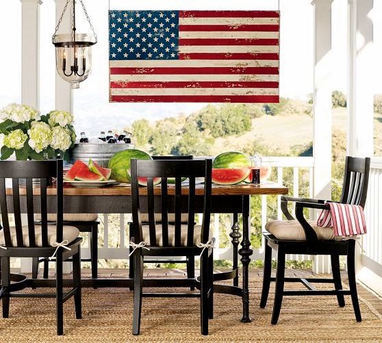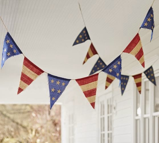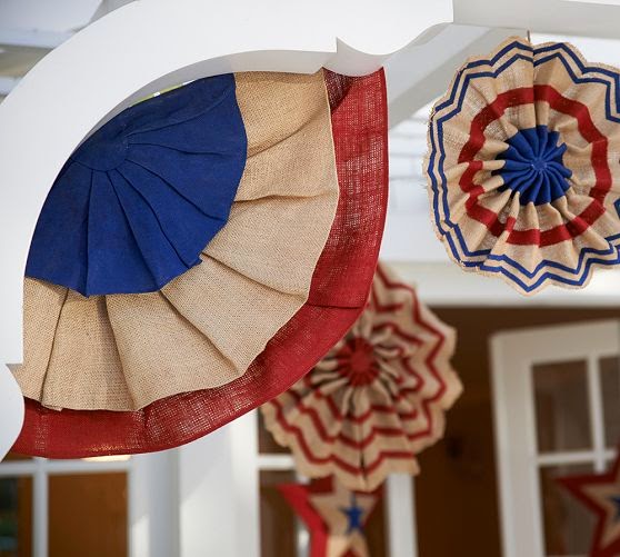 Fourth of July Burlap Party Banner ~ Stars and stripes draped along a patio give outdoor celebrations the festive look they deserve.