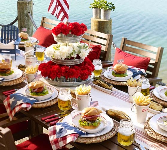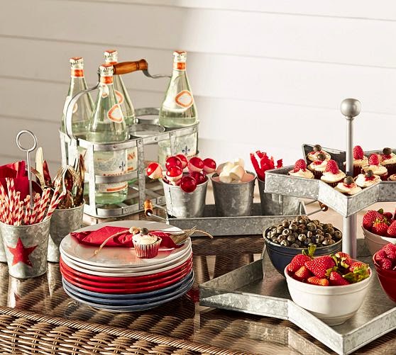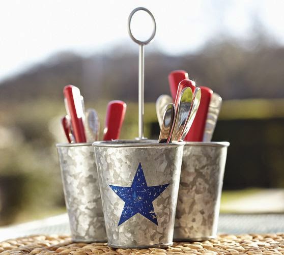 Galvanized Metal Star Condiment Set ~ A 4th of July picnic isn’t complete without the essential condiments for burgers and dogs. Combining the charm of country style with a modern pop of bright stars, these holders keep the must-haves on hand.