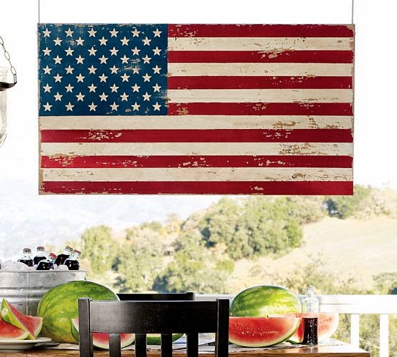 Painted American Flag ~ This substantial wooden flag is made entirely of recycled pine and then painted for a rustic finish.