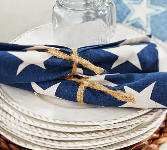 American Flag Napkins, Set of 4 ~ Star spangled with patriotic pride, our linen/cotton napkins are the perfect accent for your Fourth of July feast, or any other lively summer gathering.