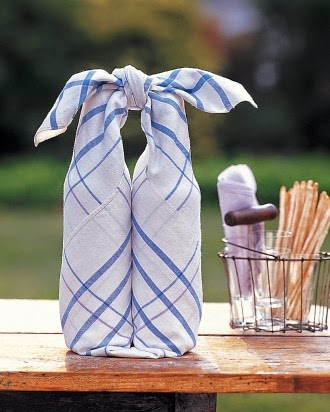 This quick folding trick helps you get a handle on picnic wines, then yields a place to lay your outdoor feast. Use a print in a seasonal hue and your set for a picnic anytime of year!
