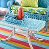After: Bright and Fun ~ White paint gave this coffee table its fresh face and simple decoupage elevates it to one-of-a-kind status. To get the look, fit sheets of scrapbook paper (we used a lace motif) to the tabletop, cutting as needed. Remove the paper and number the backs to remember the positioning. Working in small sections, apply decoupage medium to the tabletop. Adhere one sheet of paper. Apply decoupage medium on top and repeat with the rest of the paper. After the paper is adhered, apply two coats of decoupage medium, letting dry between coats.