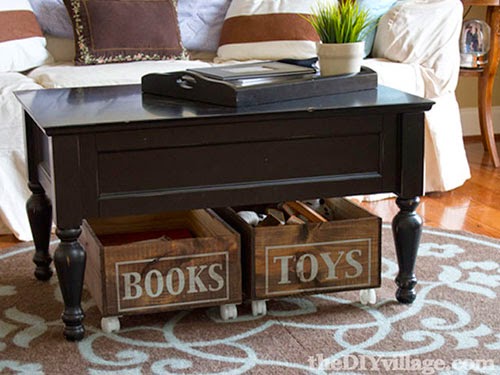 Winning Bins ~ If Spring Cleaning calls for finding new homes for strewn-about clutter, then you have to check out The DIY Village’s wheeled carts from castoff crates. (Whether you want to sample new wines or ask the liquor storeowner for empty boxes is your choice.)