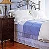 After: Refreshed and Invigorated ~ An upholstered plywood board softens the look of this old iron headboard. What’s the project’s secret to success? Steel straps, used for supporting conduit and pipe, a common hardware store supply.