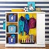 After: Entryway Organizer ~ Equip an entertainment center for entryway organization. Remove doors to create open shelves. If the backing is beat up and flimsy, replace it with a new board. Paint the unit (use a bright color for the interior for extra style points). Hang a 1×4 inside and attach coat hooks to it. Add a boot tray to catch dirt. Equip shelves with baskets for storing seasonal items such as scarves, flip-flops, and sports gear. Mark them with tags. Transform a side wall into a message center with dry-erase paint. Hang a wall pocket file for important papers and attach a key rack.