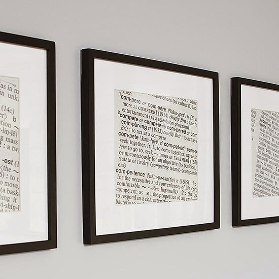 Create art from dictionary pages. Choose words based on a theme (we used “swish,” “compete,” and “score” for a sports-theme room). Enlarge and photocopy the pages and hang in matching frames.