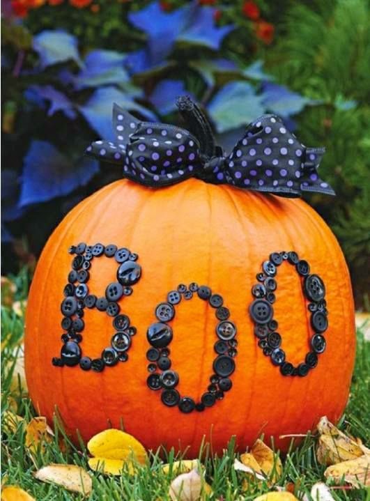 Dig out all those buttons (here all the same color) and hot glue into your saying or you could even use a monogram if you don’t have enough buttons. Then tie a bow in some awesome glittery Halloween-ish wire ribbon.