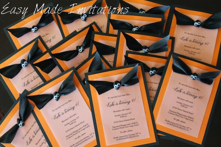 Party Invites ~ Make 2 hole punches, thread the ribbon though, tie in a knot (the knot will be the body) and hot glue two tiny wiggly eyes.