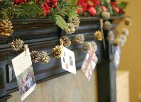 Photo Garland ~ Display your family’s Christmas cards in a unique way with a pine cone garland. The kids will enjoy hanging the cards as they arrive.