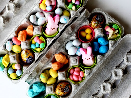 The Crafting Chicks offer an ingenious way to recycle egg cartons in this Easter basket idea. Pour candies straight into carton cups (opened plastic eggs contain smaller sweets) and close the lid. Kids will love opening it up to find their surprise.