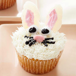 Directions: Line a baking sheet with nonstick foil. With a toothpick, draw two half-circles about 2 in. in diameter for head and four ear shapes about 2 1/2 to 3 in. onto the foil. Melt white candy melts in microwave as package directs. Dip one end of each chocolate-covered pretzel stick into melted white candy for magician’s wand. Place on foil; let set. Place 1 1/2 Tbsp of the melted white candy in a small cup and tint pink. Place both white and pink candy into separate quart-size ziptop freezer bags; snip off small tip from one corner of each bag. On the outline on the foil, pipe in white for head and ears. Use a small spatula to spread. Then on the ears, pipe pink melted candy in Remove liner from cupcakes; invert onto plate. Frost top and sides with chocolate frosting. Frost the cookie on top and sides. Place on top of cupcake. Gently peel head, ears and nose from foil. Make slight cut in top of cookie to insert ears; prop head against ears. Place a little chocolate frosting in ziptop bag; snip off tip. Pipe eyes onto bunny head. Use a little frosting to position nose. Cut sour ropes into thin strips for whiskers; insert into frosting behind nose. Place wand on plate.