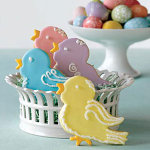 Directions: You’ll need baking sheets and a 6-in. bird cookie cutter. Pulse almonds in food processor until finely chopped. Add flour; process until almonds are finely ground. Add butter; pulse until crumbs form. Add sugar, egg and 1 1/2 tsp extract. Process just until dough forms. Pat dough into a ball; divide in half. Place one half between 2 sheets of wax paper on a dampened work surface; roll out to 1/4 in. thick. Repeat with other half. Slide onto a baking sheet; place in freezer about 10 minutes.