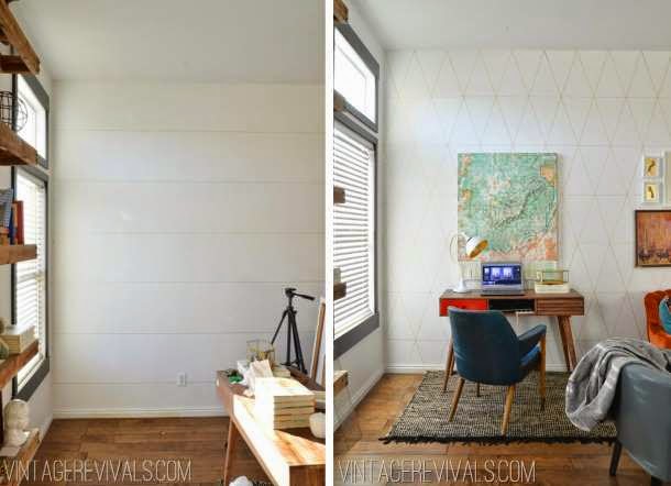 Wallpaper is hot, but it can get expensive. To get a similar look for a minimal investment, a Sharpie pen and a straight edge will help you turn a plain wall into a geometric work of art.